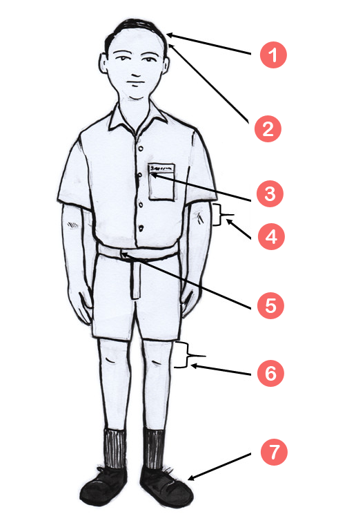 18. කොණ්ඩය කොටට කපා පැත්තෙන් පිරිය යුතු අතර (ජෙල් වර්ග භාවිතා නොකළ යුතුය.) ඉතා කොටට කොණ්ඩය නොකැපිය යුතුය.