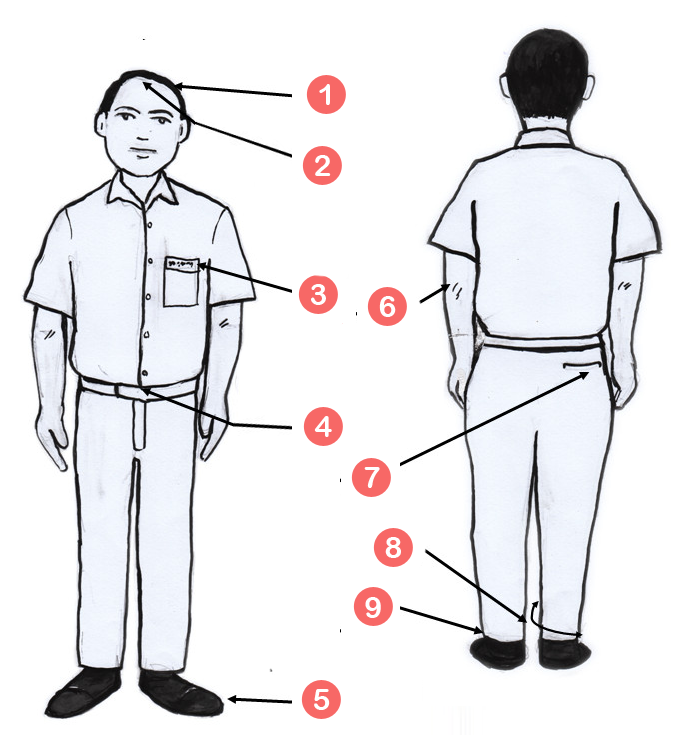 12. පිටුපස සාක්කු නොතිබිය යුතුය.